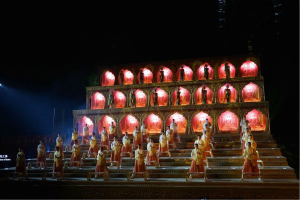 大报恩寺遗址公园•博物馆剧场•实景演出《报恩盛典》,独占毗邻两大南京AAAAA级景区的旅游资源优势,在南京城市地标与文化坐标的大报恩寺遗址公园内重建的琉璃宝塔前上演。