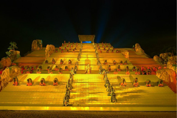 《中华泰山·封禅大典》是通过古代帝王对泰山封禅、祈福活动的艺术提炼,呈现秦、汉、唐、宋、清五朝六帝封禅泰山时的祈福场景,打造出的一台气势磅礴具有中华民族核心精神的商业演出。