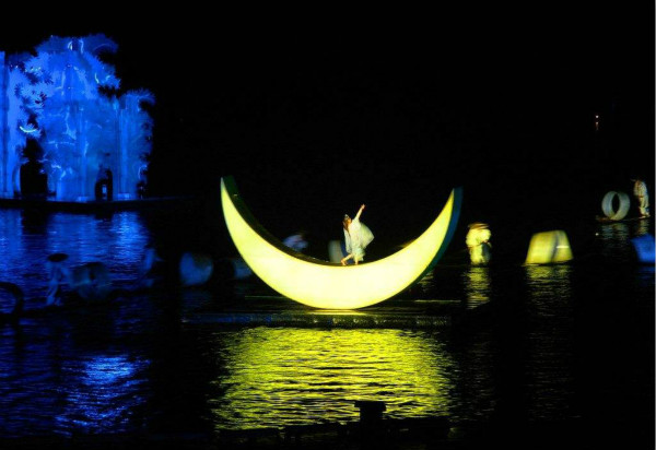 大型溪流漫游演出《桃花源记》根据原著中的描写,朔秦溪而上,开启“桃花源”的寻梦之旅,在秦溪两岸4.6公里的演区内,打造与自然景观浑然天成的河流剧场,19个演出点被河流剧场串成一线,重现千百年华人心中魂牵梦萦的梦幻场景。