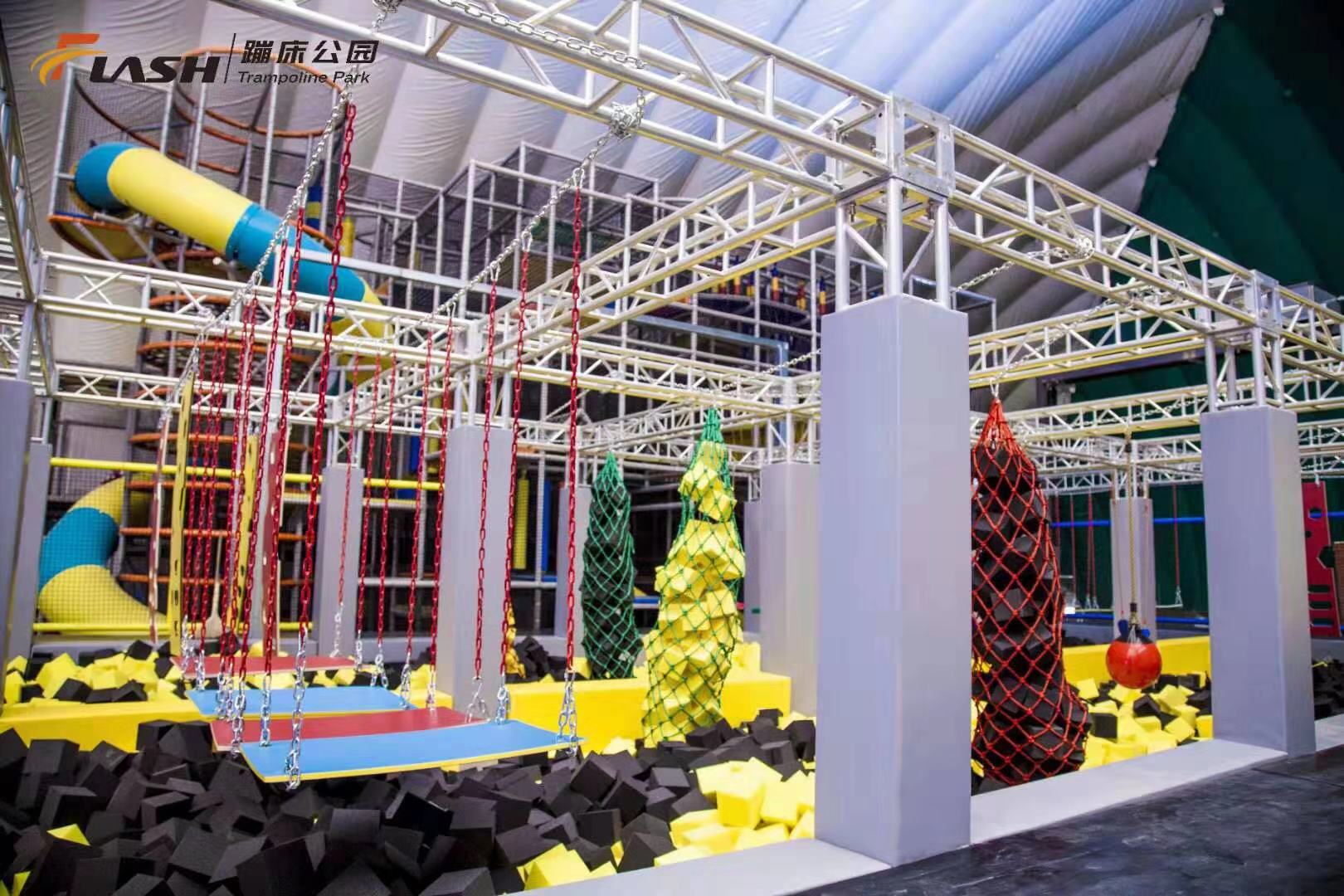 据了解,Flash蹦床公园创世团队均从事体育运动十多年,组织参与过各类大型体育场馆运营管理工作。一直以来,怀揣梦想的他们一直想打造一种运动和娱乐相结合的项目。机会总是留给有准备的人,他们偶然的机会接触到了蹦床的项目,并认定这是他们的机遇。于是他们精心考察国内外蹦床公园玩法,历经200余天,结合欧美、亚洲人群体育运动习惯,他们经过全新的打造,于2018年7月上线运营了Flash蹦床的项目。‘酷炫潮流,不止于大’,Flash蹦床公园其场馆设施有“蹦床”、“蜘蛛侠”、“弹跳扣篮”、“高空速降”、“躲避球”、“障碍闯关”、“平衡木”及大型儿童游乐设施淘气堡、海绵池等诸多项目,配套设施有主题餐饮区、水吧、咖啡厅、娱乐区、停车场等设施。同时场馆里室内体育恒温,免费提供私人储物柜,安全教练360°看护,二层面积1000㎡超大看台,可保证娱乐、休闲均有高品质体验。