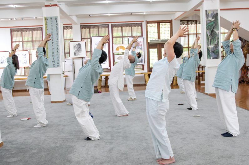 在“禅武”课程中,队员学习了少林寺众僧日常演练健身功法之一的“八段锦”。授课的武僧介绍说“八段锦是古代流传下来的一种气功功法,有舒筋活血、调理气血的功能。”队员张先生说:“我有严重的腰颈脊问题,平时不能做剧烈运动,但是八段锦的课程居然全跟下来了,整个身体得到了放松。”