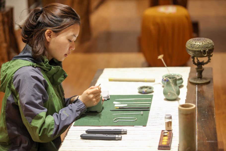 本次活动中,景典游和照见山居也共同准备了充满传统文化韵味的“陶艺”课程。课程的老师讲到:“佛法在世间,不离世间觉。我们手上做的陶艺,能看到我们最真实的内心。”在活动中,一位年轻母亲做的是一只小鸭子,她说要送给她的儿子做礼物;一位妻子做了一个烟灰缸准备送给自己的丈夫。课程结束后,一位队员受到深深的启发,说“活了几十年,第一次用心体会自己,体会人和人的关系;第一次清楚地看到自己内心的镜像。我做陶的时候心里想到的那个人,就是对我最重要的那个人。”