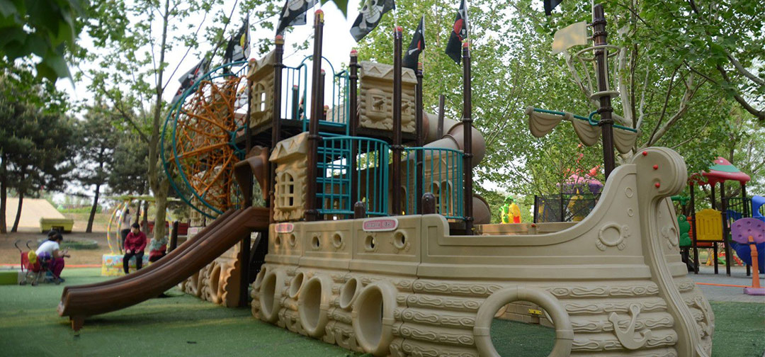 看着小家伙从船上的滑梯滑下,大笑着扬一把水,欢乐的躲在船上。假装自己在海上航行,扮演着勇敢、崇尚自由的“加勒比海盗”在无尽的大海上航行。
