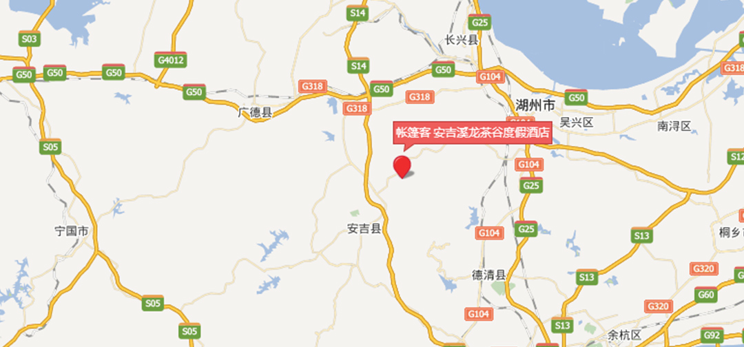 从上海至酒店的自驾路线:G50沪渝高速直行右转进S14杭长高速至安吉北下,左转进入马良线直行,见溪龙方向左转进入S306进入溪龙乡黄杜村,沿路口导视走