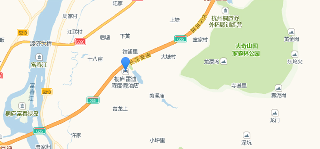 杭州站驾车至桐庐雷迪森度假酒店:驾车约87km,约1小时17分钟;