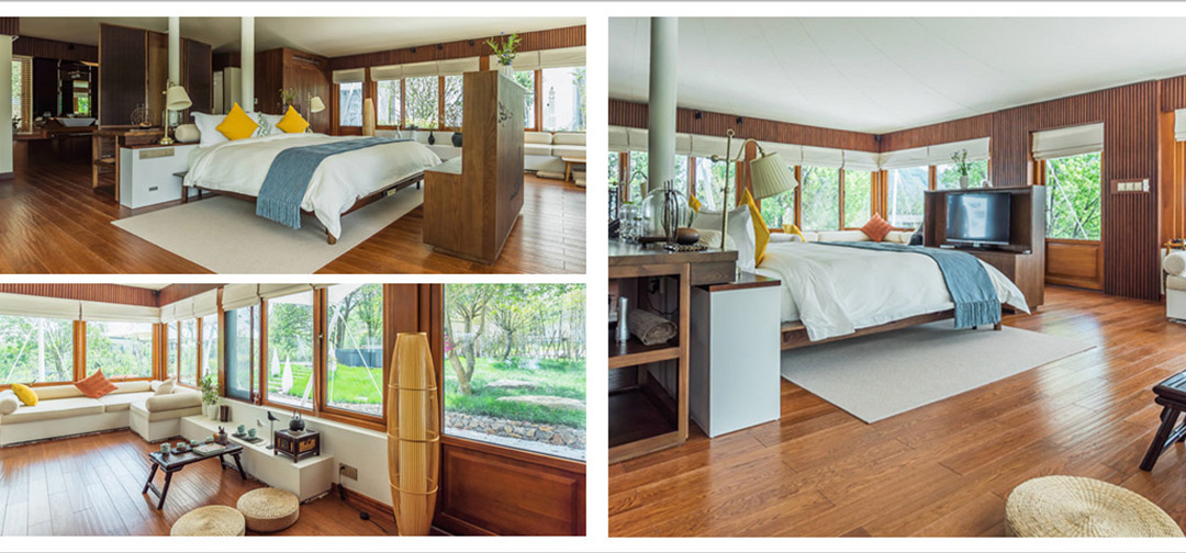 豪华帐篷别墅采用格调家居设计,拥有双卧双卫浴,完全可以满足大家庭的度假需求。超大亲水露台,自然和奢华之间一次不露斧凿的融合。