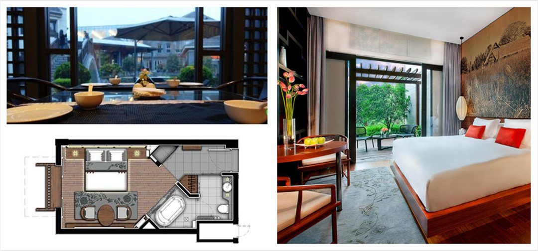 拥有配置大床的卧室,当清晨的一米阳光洒满整个房间,看窗外青葱茂密的湿地,听清流静淌,耳畔边莺声缭绕,感受江南典雅风韵,谱写亲密浪漫。(双床房型请联系景典客服)