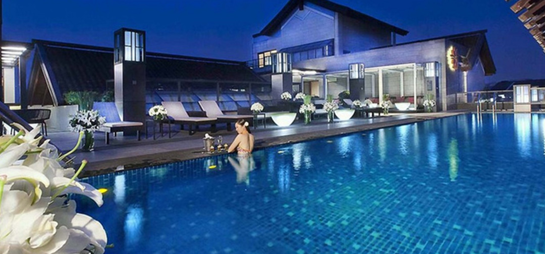 位于三楼平台的无边泳池,不但可以游泳放松,坐在游泳池旁小酌清酒也是惬意至极。置身西溪充满野趣的环境中,偶有白鹭略顶而过,或面朝绚烂的晚霞看夕阳西下。