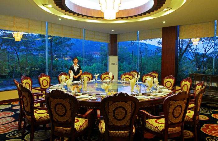 酒庄依山而建,风格别致,每个餐厅都配置红木家具,装修别致。室外建有停车场、木质长廊、盆景观赏区、根雕展示区等重要设施和景点。