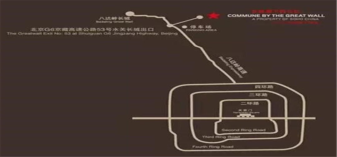 距北京国际首都国际机场约75公里,驾车约75分钟,距离北京市中心约65公里,驾车约60分钟。公社直通八达岭高速路(现京藏高速),方便快捷。距离八达岭机场(可提供私人飞机的升降)仅为15分钟的车程。