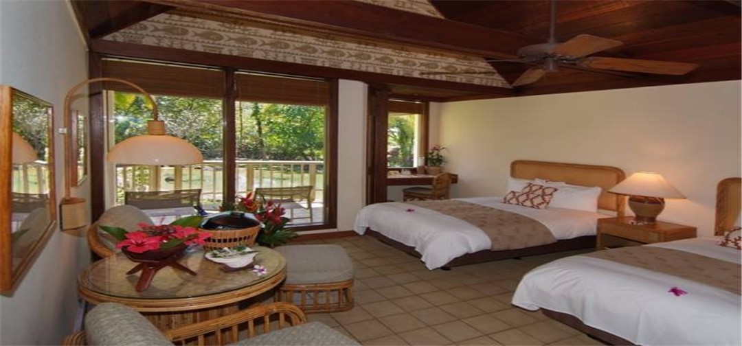 从园景房可以一览无遗眺望绿色葱葱的热带花园、以及各种鱼类及海龟、生长着赤魟的异国情调的池塘与庭园。