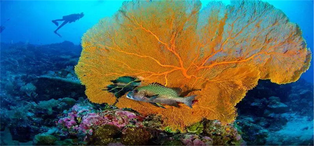 如果在帕劳,当你把头埋入湛蓝的海水中,还可以看见蓝色珊瑚礁,缤纷的软体珊瑚随着碧波慢慢摇曳着,五颜六色的鱼儿围绕在你身边。